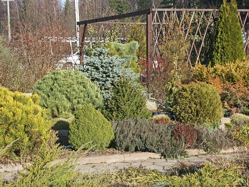 Бордюр из малорослых хвойных пород с тимьянами, эриками и пр. Вид с Ю.