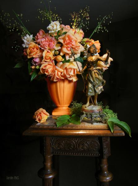 "Crepuscule", "Phyllis Bide", "Mme Alice Garnier", "Abraham Darby", briza media, fraxinus ornus.