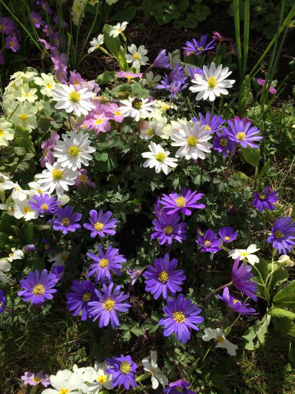белая и фиолетовая, плюс примулы