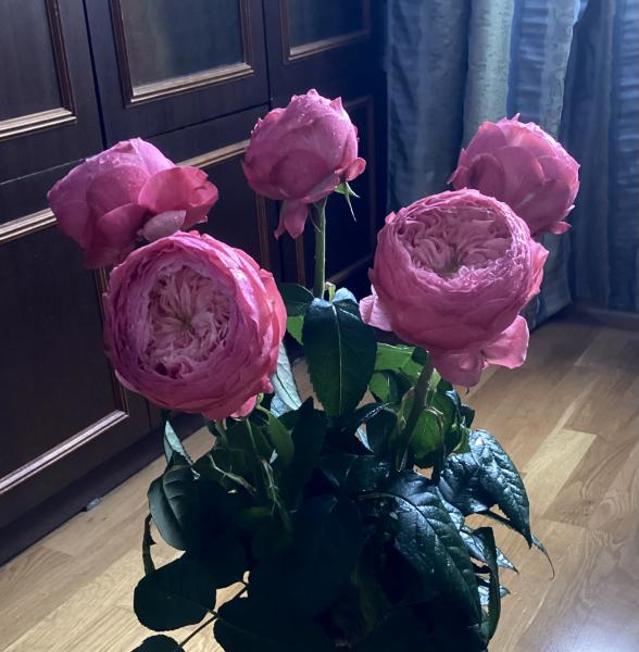 Потрясающей красоты розы в букете. Плотные бутоны диаметром около десяти см, длинные прочные стебли. Первое впечатление - пионы!